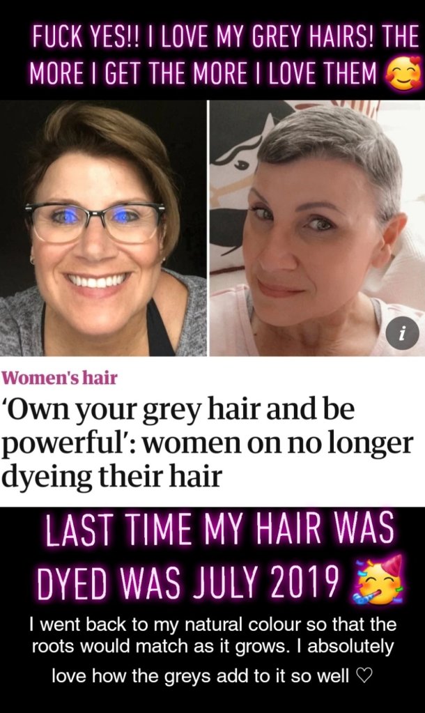 Why were women taught to hate their grey hair? I am 35 and absolutely love mine. It took me until I was 33 to realise this but I finally came to the conclusion we are all born with the perfect colour that suits us. Our own š
