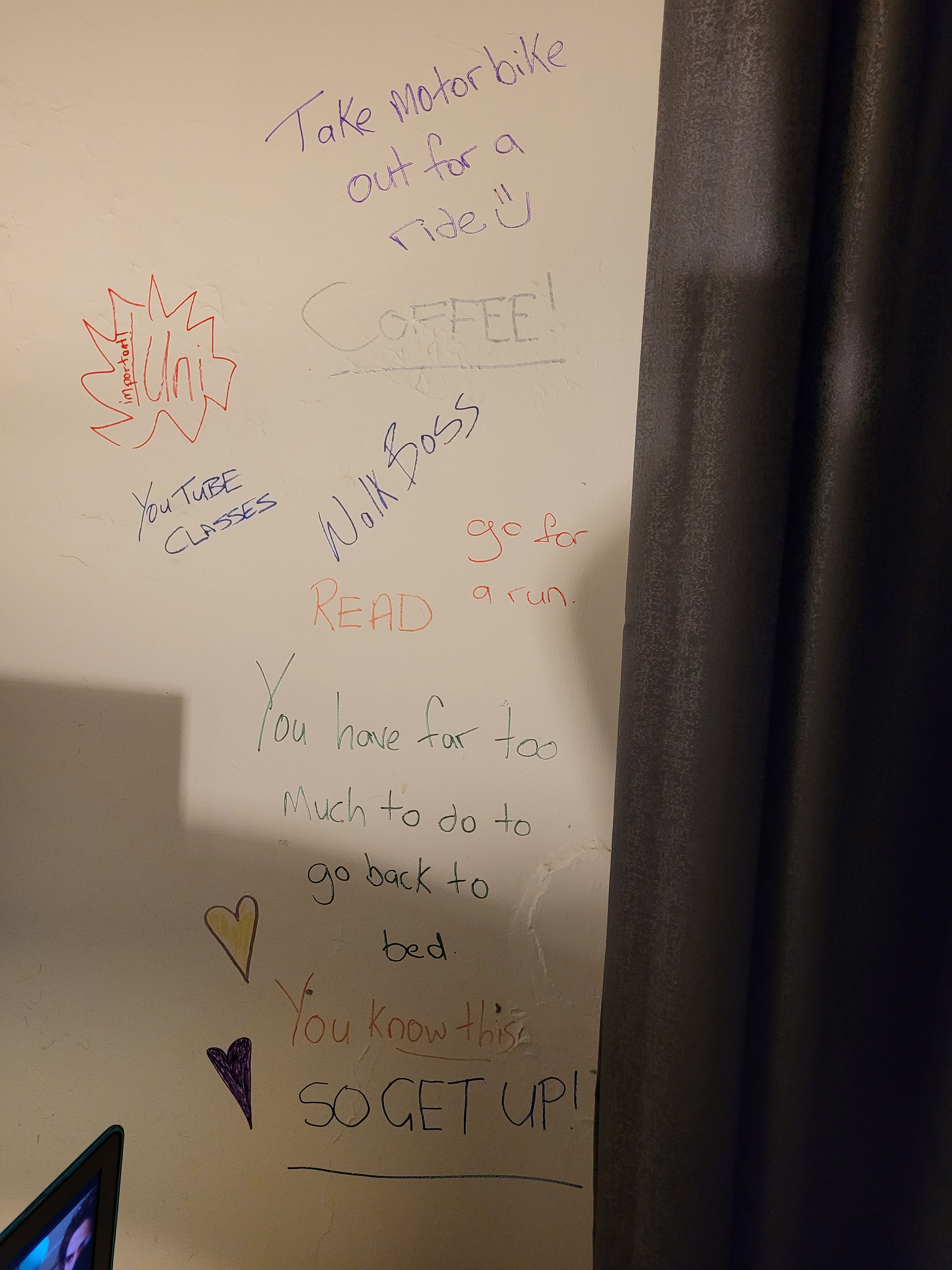 I added to the note I had only written on the wall next to my bed just now before making this post. I love that I can write directly onto the walls and still can’t believe it took me so long to figure out š