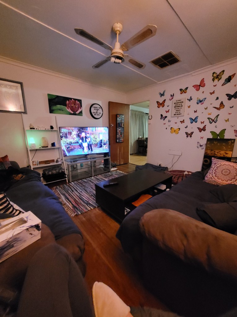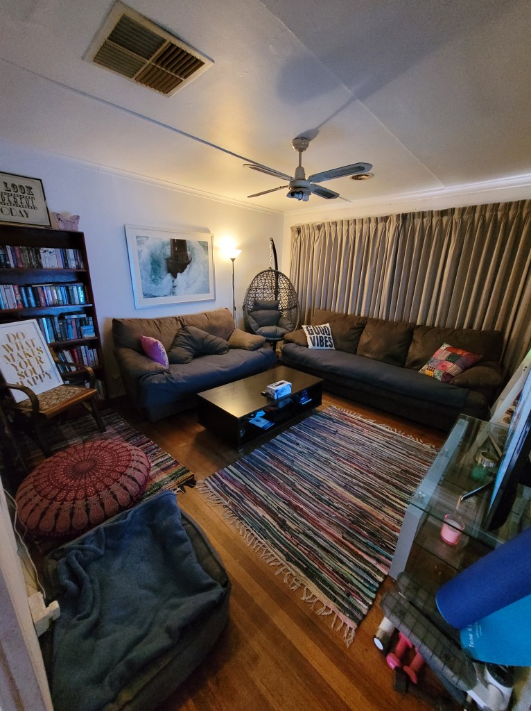 I had to move a number of things around and have even sent taking this picture, moved the couches further away so chair has more room to swing. Something about swigging soothes me š„°