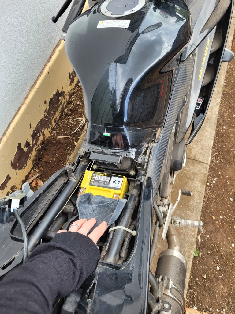 And now I am extremely happy and proud to say that I was able to install the new battery all by myself! Checked everything and rode out to street to turn it around to put back in the shed. Bike is in great working order again but I on the other hand still need a lot more practice 😁