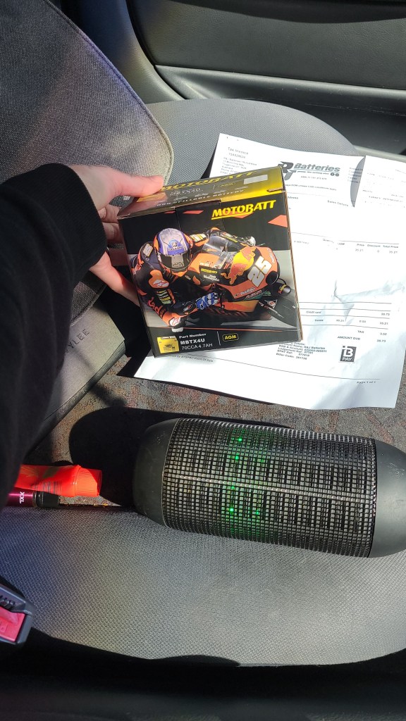 Yesterday the motorbike store said the battery cost’s $87 plus labour $20-$30. Yet I was able to buy the exact same battery brand new elsewhere for $38.73!! I couldn’t believe the difference but was very happy my neighbour suggested it this way.