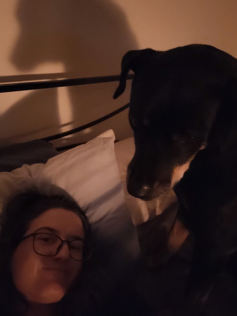 He really wants in 🤣Doesn’t understand when I explain I’m not under the covers yet 😅Still trying to find a way in 😂Now he’s practically lying on me He is officially lying on my right right side snoring his head off 😴 😆Mmm vegan lollies 🍭 😋