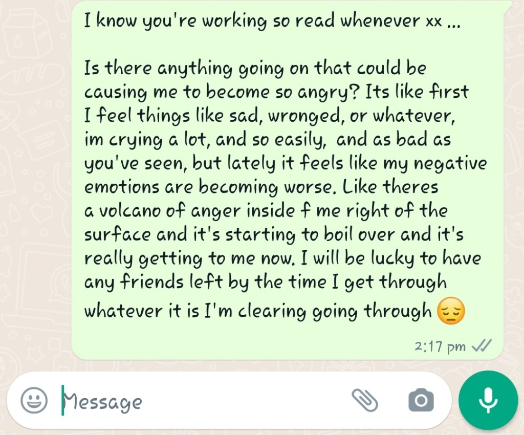 I really don’t know what I am going through or experiencing right now but I have now bitten off two people’s heads today in messages and the second one I don’t even know why.