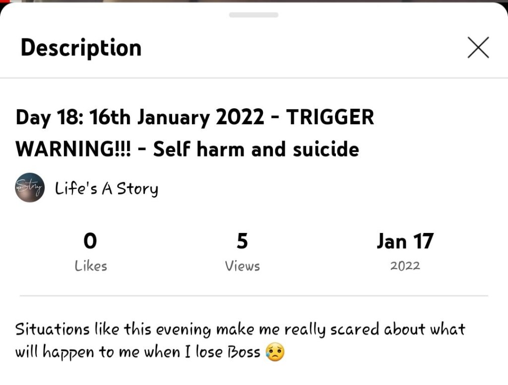 Day 18: 16th January 2022 – TRIGGER WARNING!!! – Self harm and suicide š
