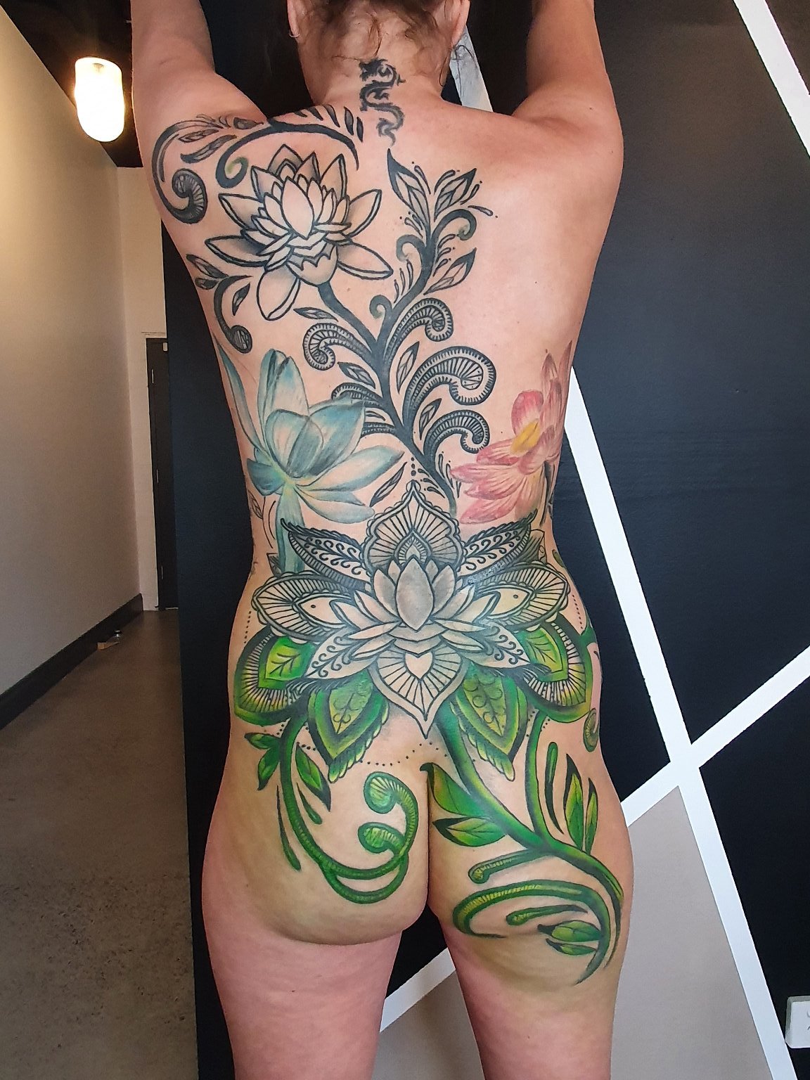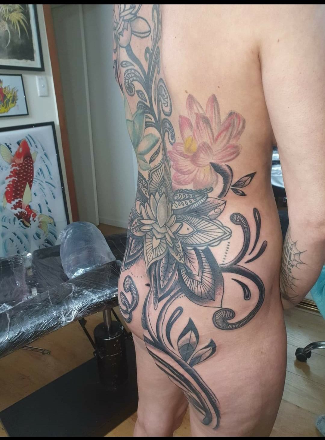 My amazing tattooist has moved so currently doesn’t have a studio set up, so I’m really happy with how far we got.