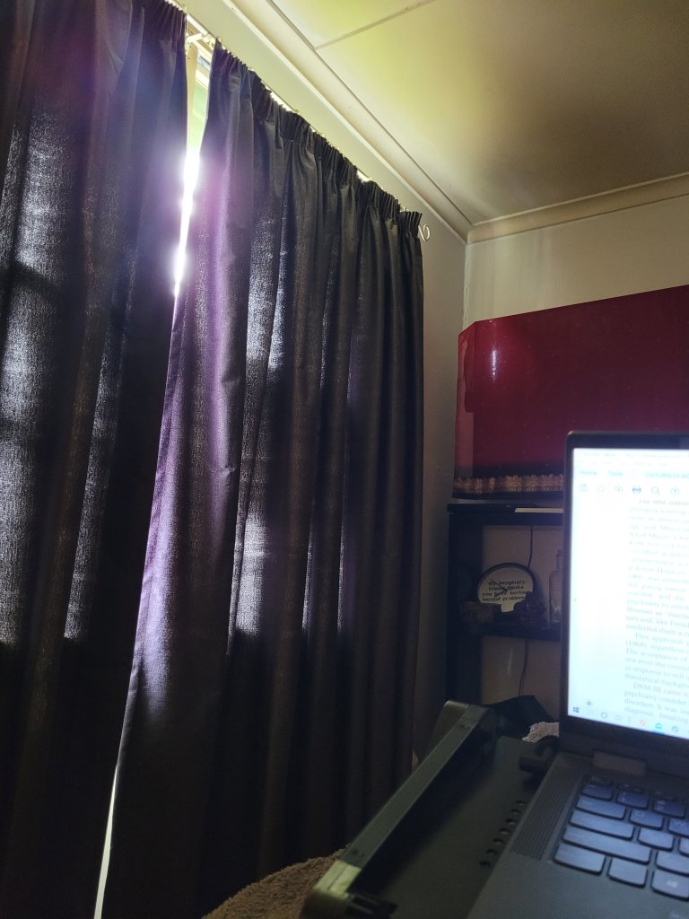 I am so comfy but the gap in the curtains is letting light hit me in the eyes. I really don’t want to get up but it’s really annoying..