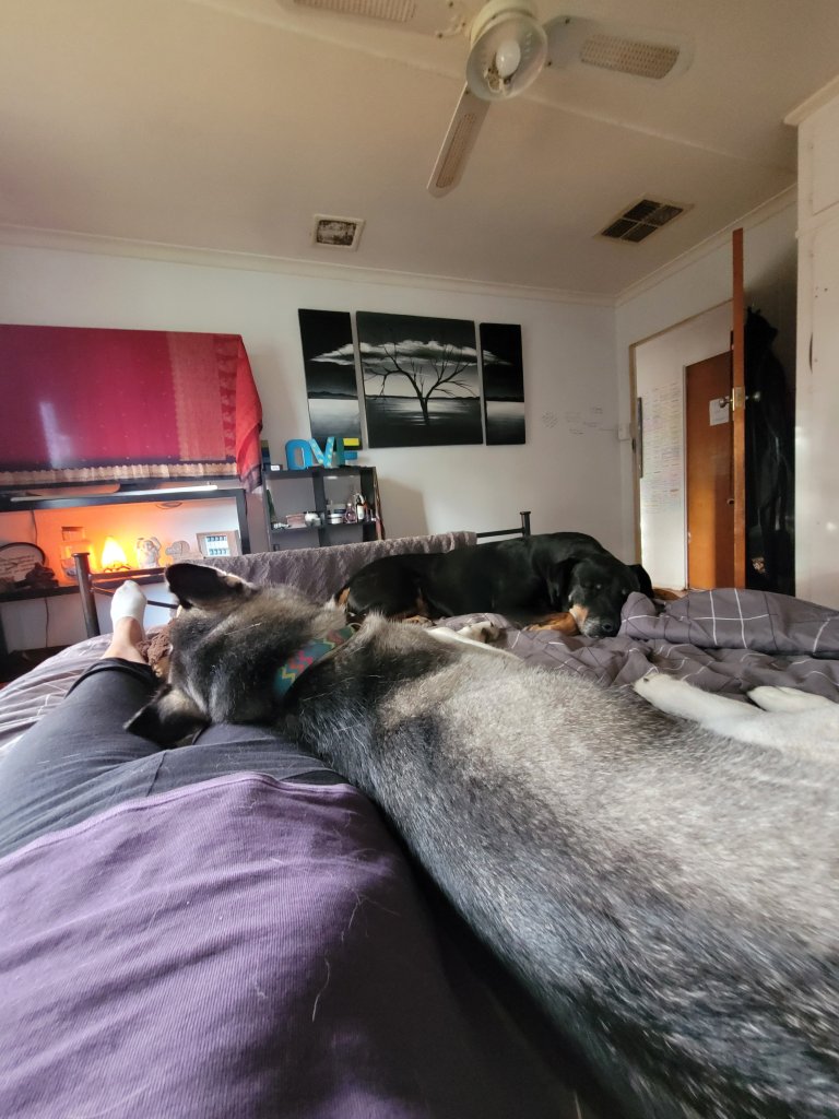 Oh my fkn god!!!! I just moved my sore leg badly and fuck did it hurt š« both boys are asleep next to me and it’s so quiet I can hear them breathing and the leaves movings. Just quiet street with nothing going on.