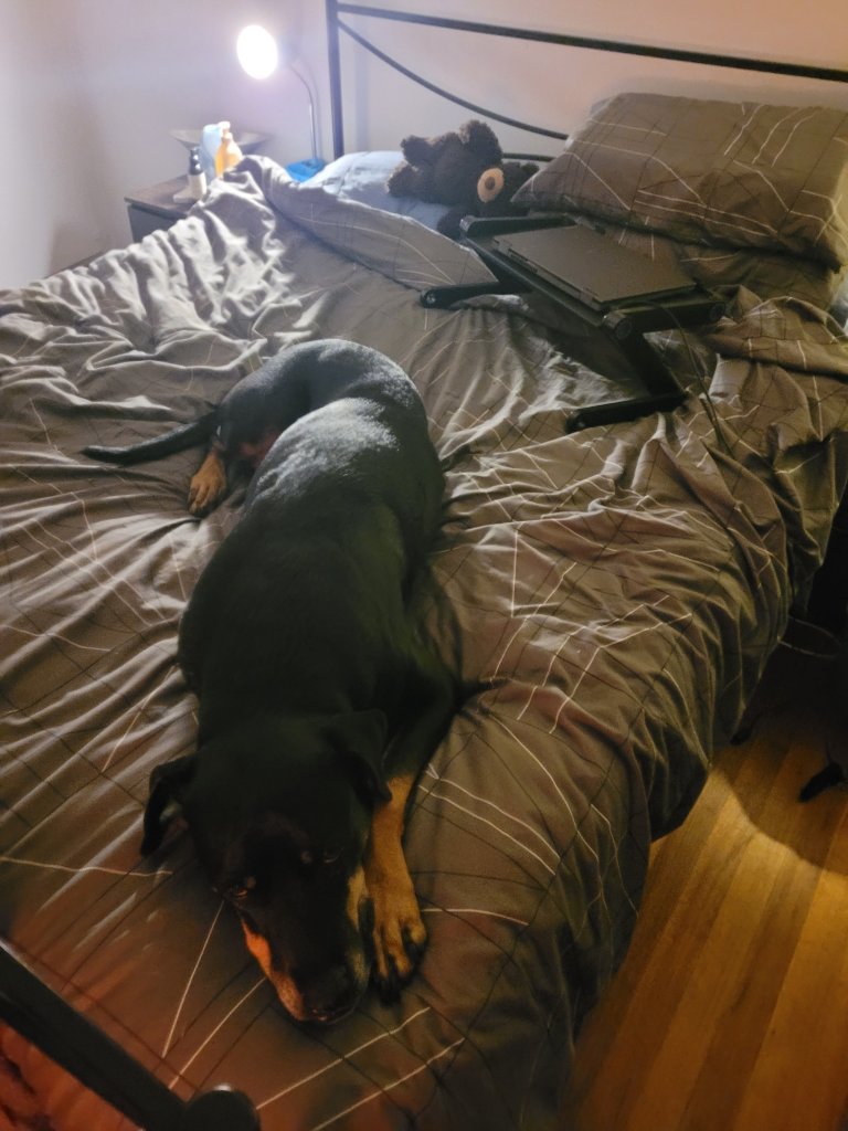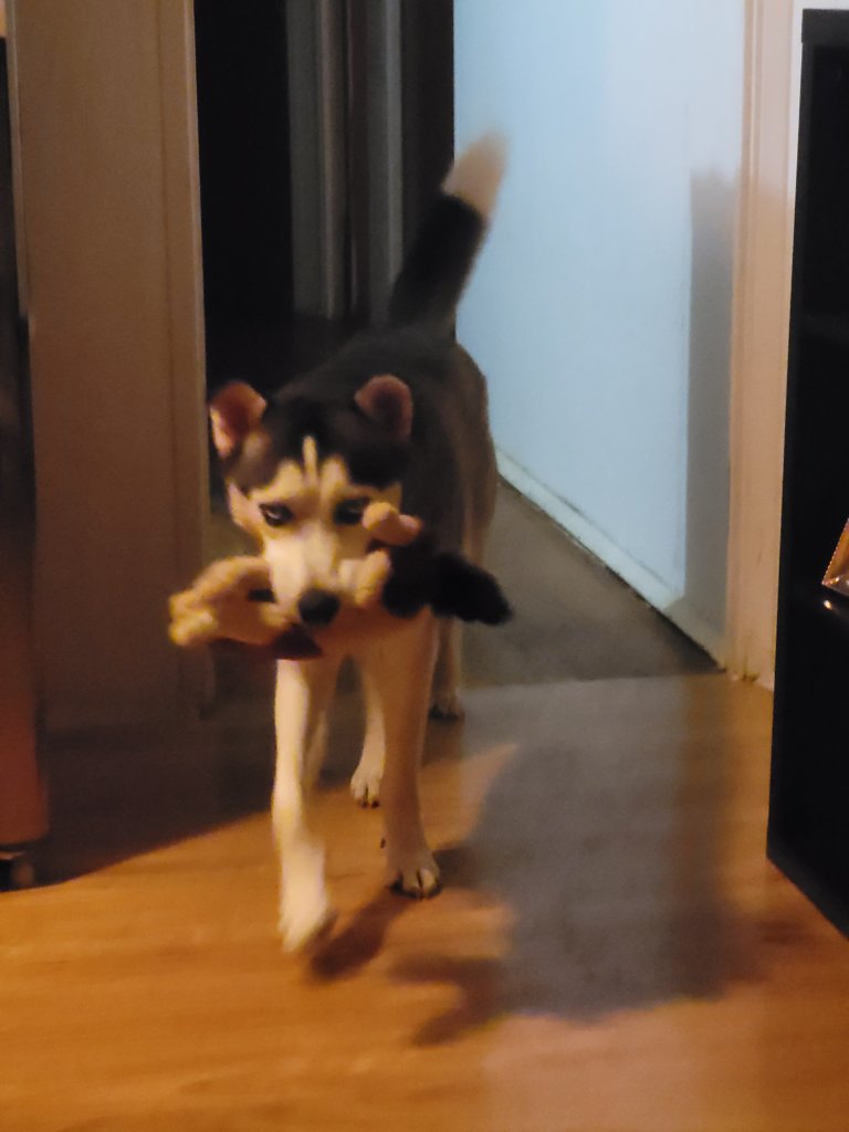 Now Boss is done and gone to the couch. Seems Diesel is too as he just got his toy from my room and is wandering around with it.and just took it outside.