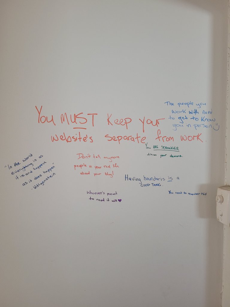 Being free from my families judgement and how they might react to something I say or do os what has allowed me to truly be able to be me. Now I have no issues whatsoever about what they might have to say about it. But it would be really dumb if my work did know about this because I would go back to being in my head about what i post, which completely detracts from the point of having this website 🙄
