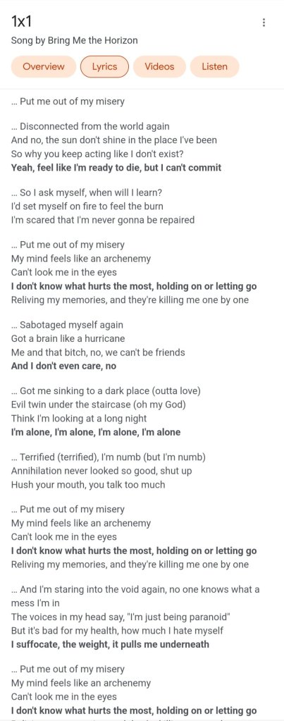 The lyrics are from Bring Me The Horizons song 1×1 🤩