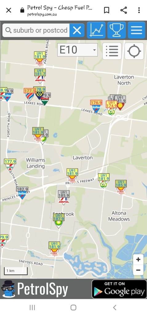 Thankfully this petrol station is right next to the entry onto the freeway. Still a sucky price though.