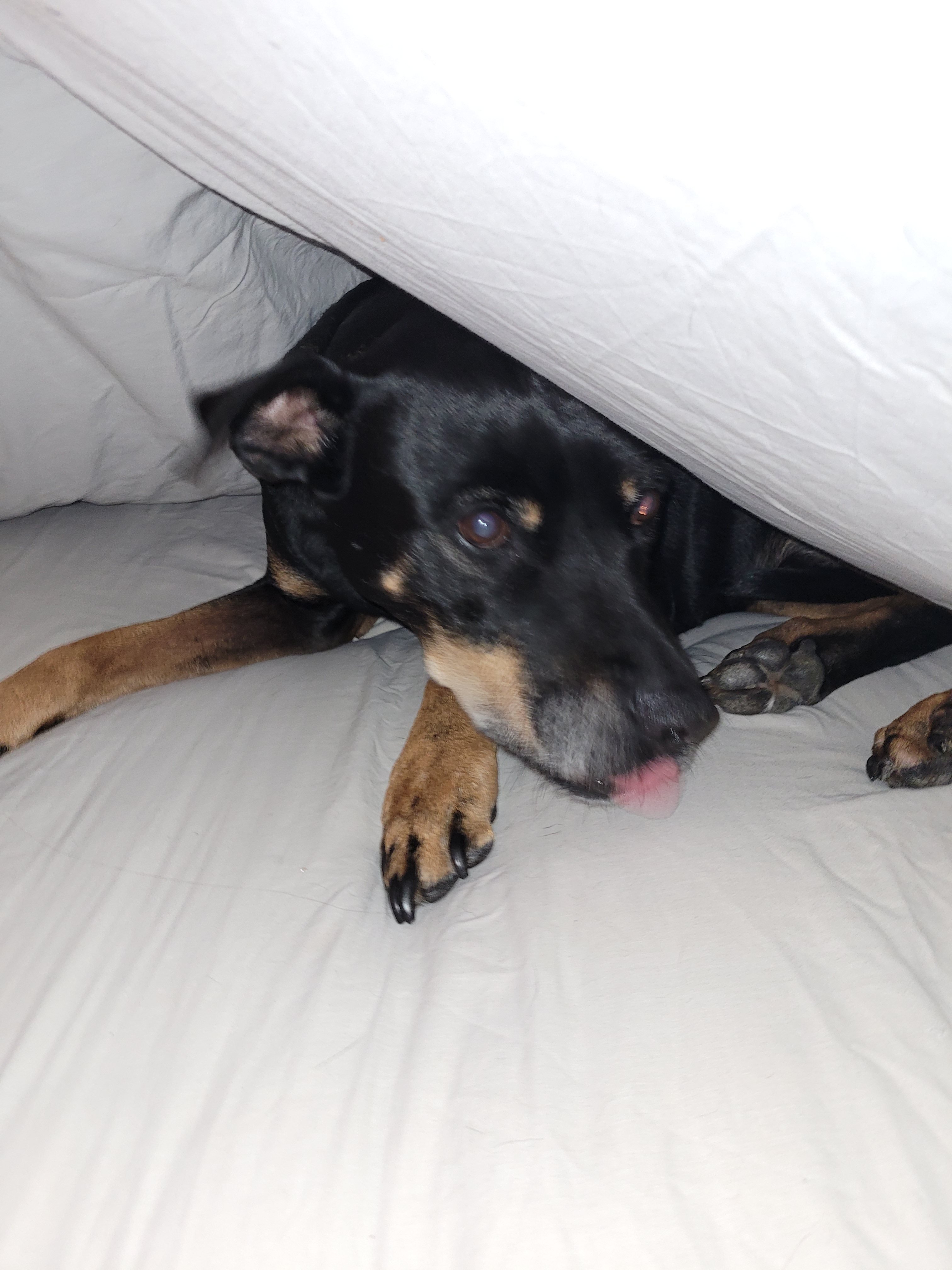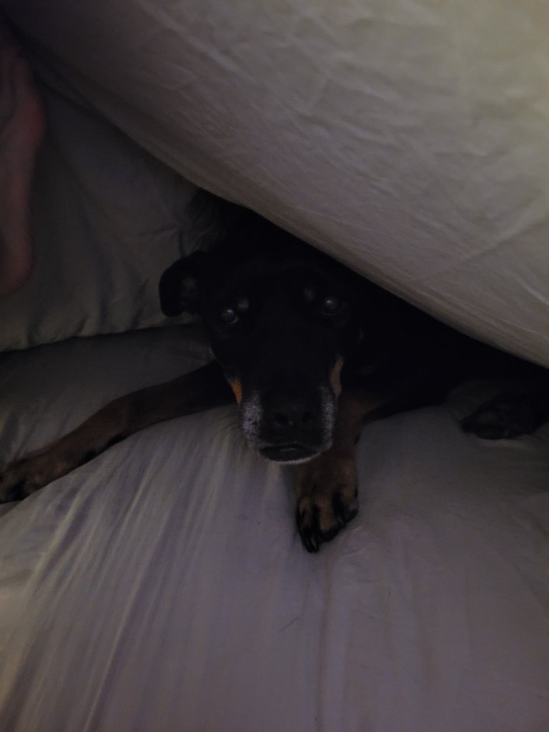 Boss steals my spot every time I get up. Tonight I had to actually pack everything up just to get him to move over. He took that to mean ‘it’s time to get in”… so much for my fresh sheets 😆
