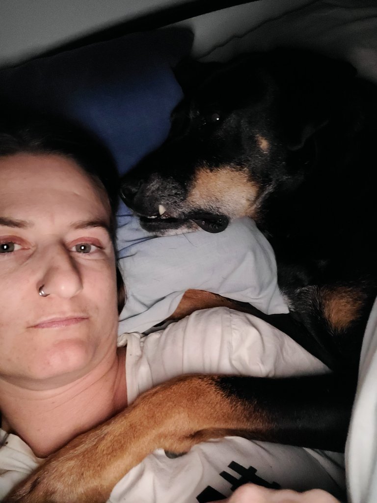 He was giving me cuddles but has moved now, which is actually good because his leg was digging into my back 🥰