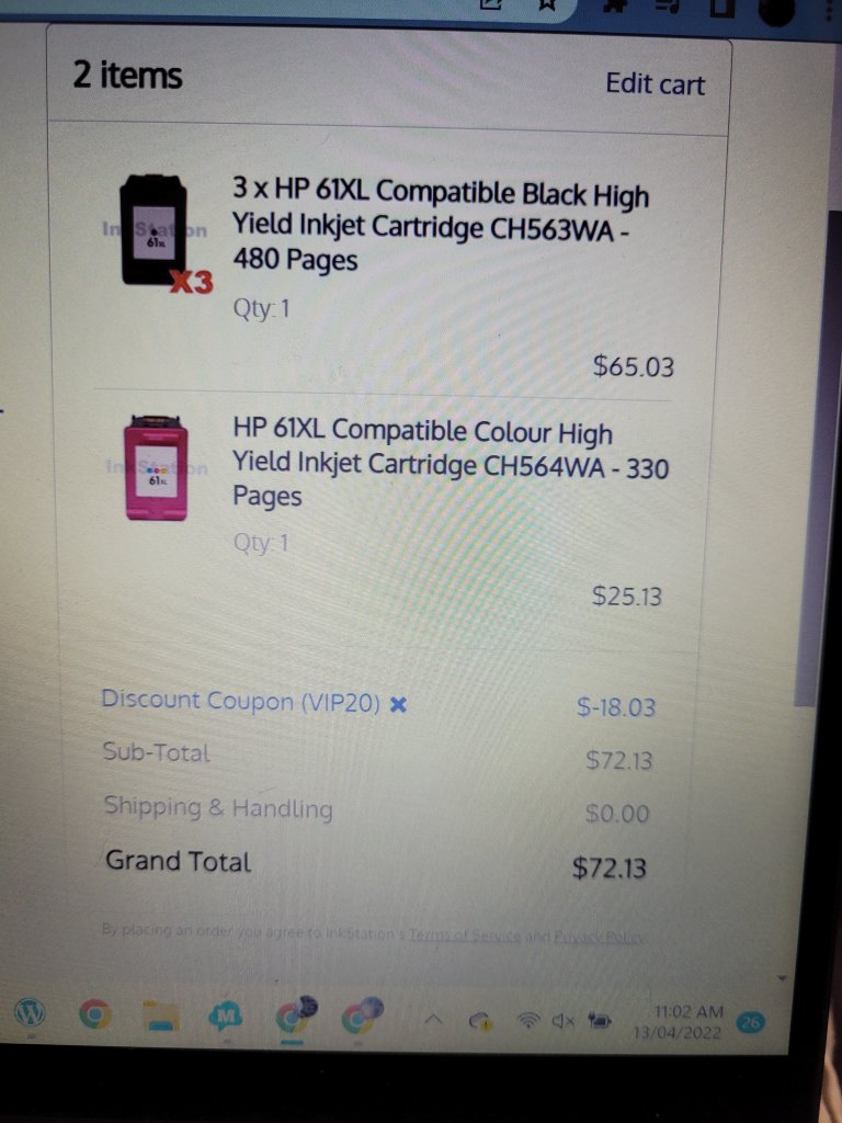 I need new ink for my printer. Was $90.16.