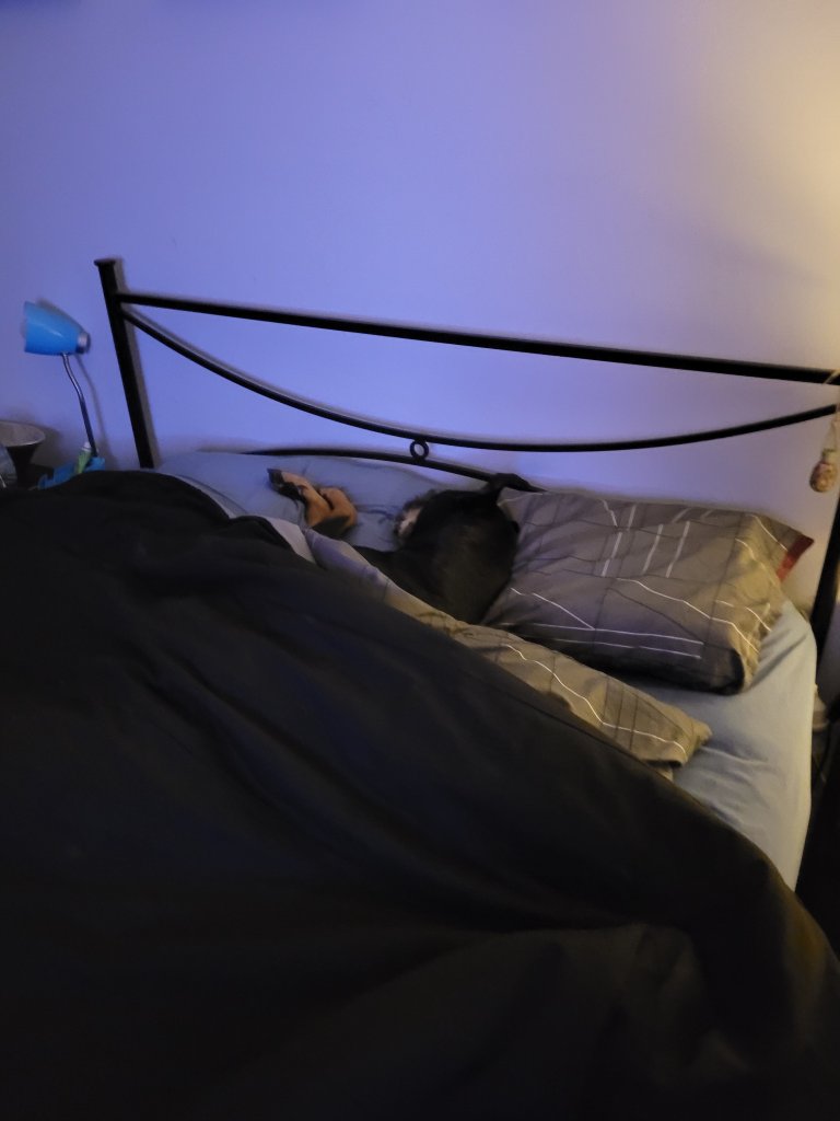 Anyway, we are both back in bed now; well, he’s on the duvet, but it won’t take long before he wants back in lol