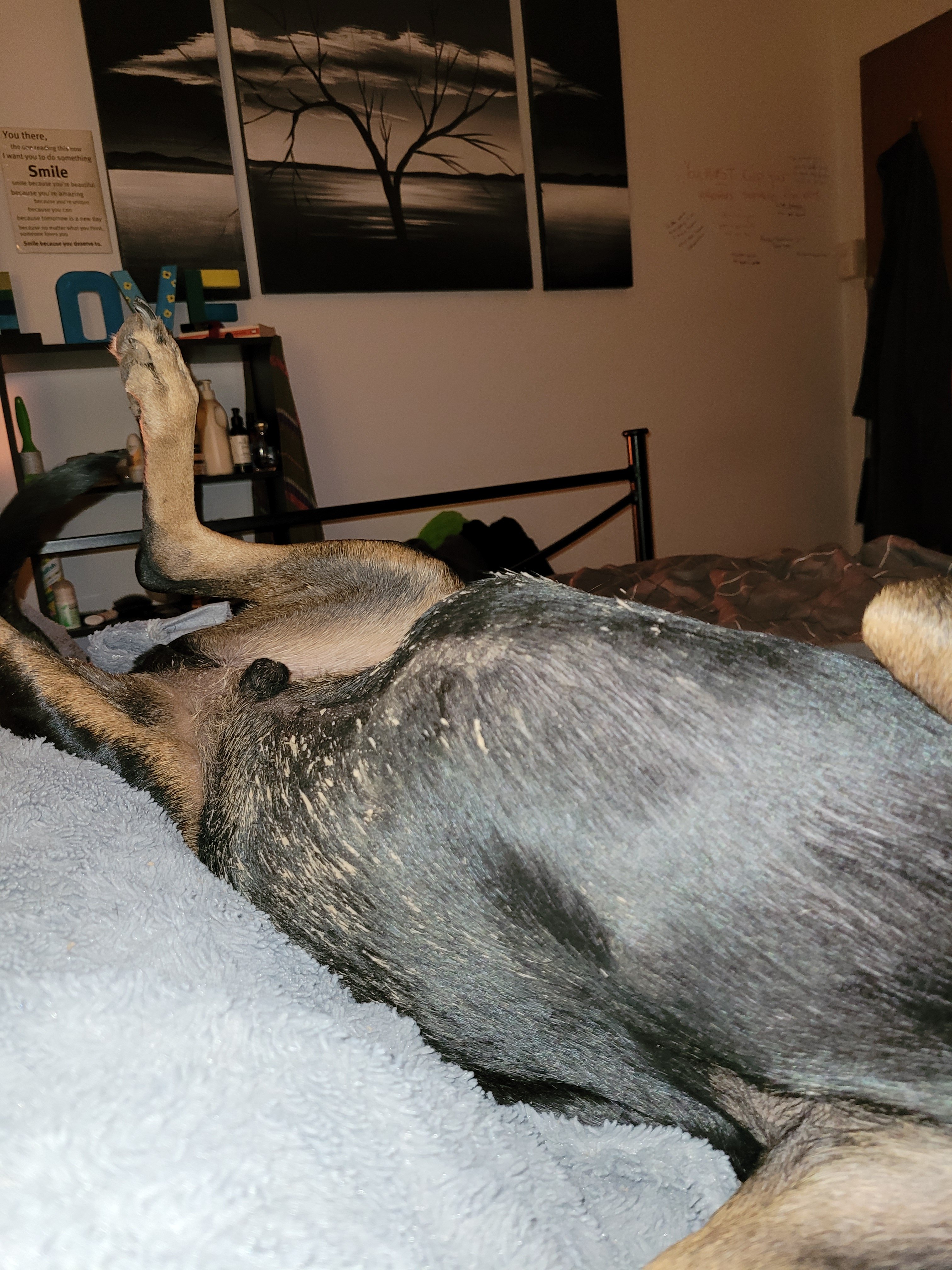 When we got back, well thr first thing I did truthfully was turn on my vape 💗 and then try to towel off what mud I could off his paws, but wasn’t overly liking that. So I gave him dinner and tried again while he ate. I got what I could off and made peace with the rest. By this time, I just needed to lie down 😅😆