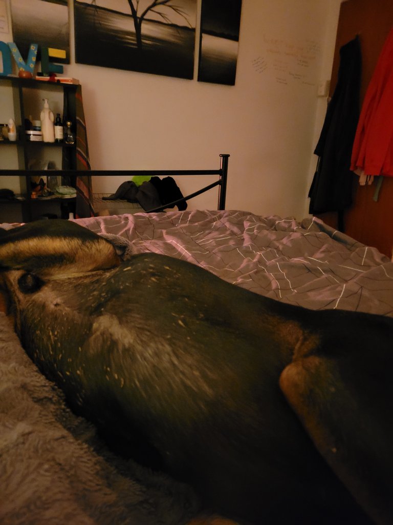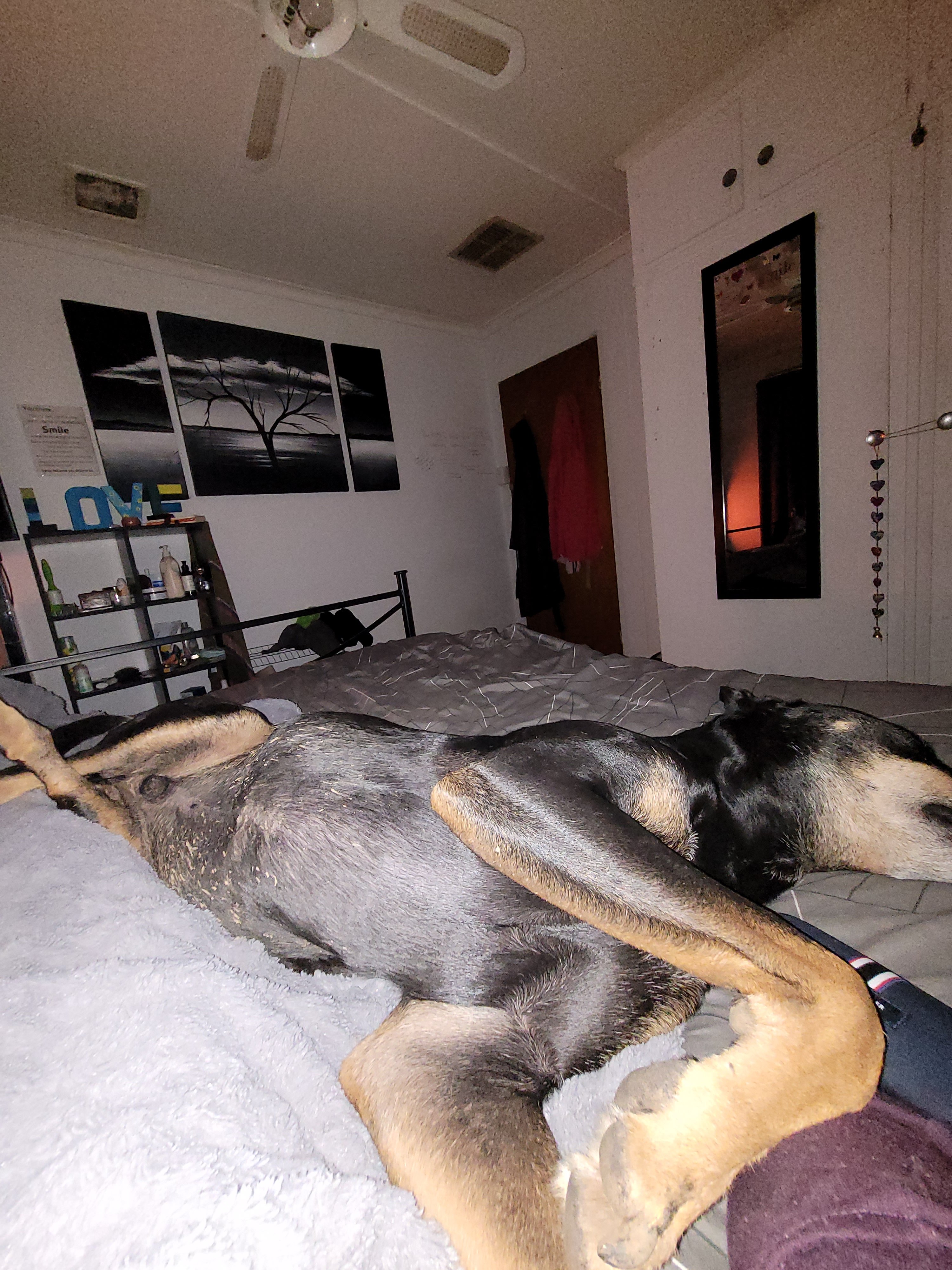 Boss is my best buddy who is covered in mud, passed out next to me, his mum, who has absolutely no energy whatsoever to even try to bath him. Effectively meaning, my bed is once again going to be covered in mud 😆😆😆