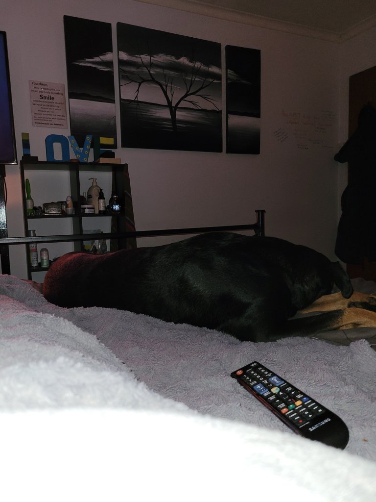 Anyway, I’m tried and Boss got into bed with me, which helped me to decide to turn my laptop off. I think I might check out the Depp and Heard trial on YouTube and probably go to sleep soon. Friends is still currently playing on the tv as background noise.