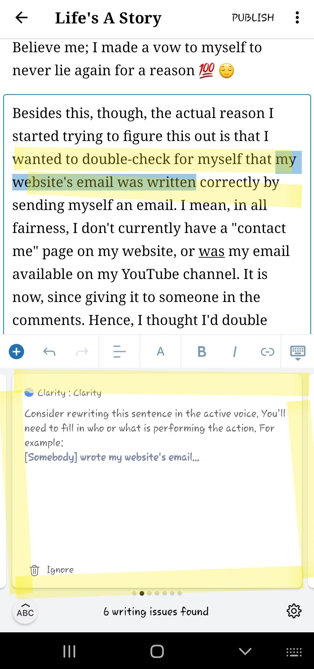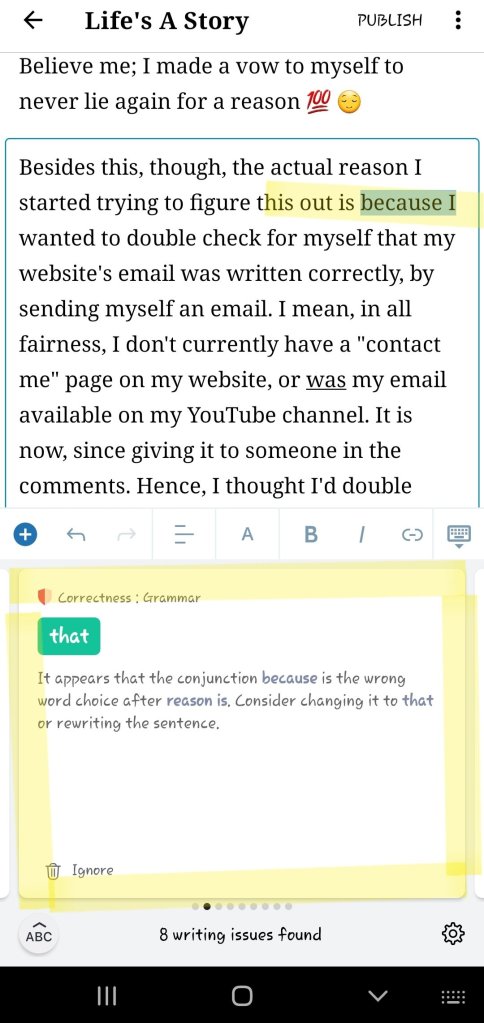 On a quick side note, which I am sharing since I think it’s cool and why I am so in love with Grammarly, here are a couple of screenshots that I have taken as I wrote this blog 😄😎🤓