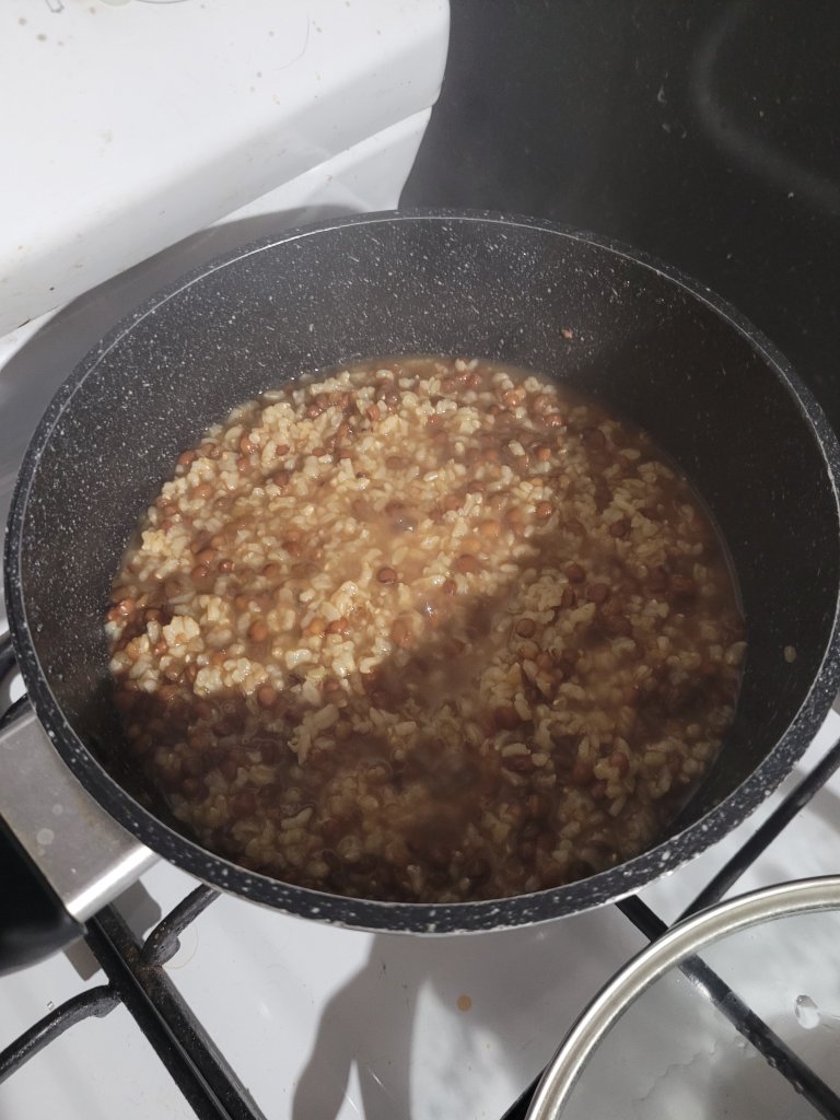 I couldn’t wait long enough for the liquid to be completed absorbed, waiting while it rested on stove after turning it off, because I was so hungry š