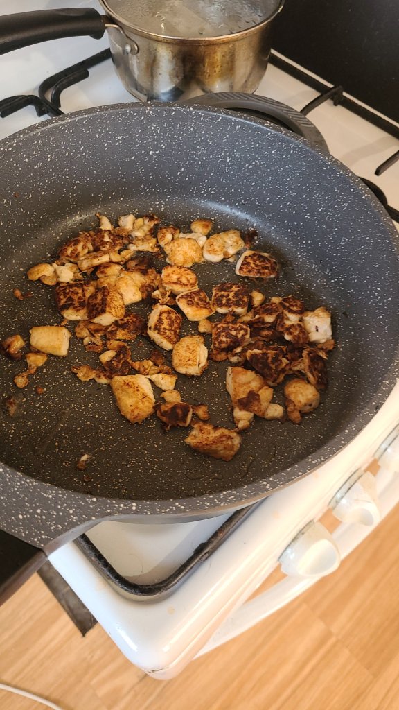 The tofu fried up nicely, which was great, though I did end up cooking it for a bit too long š