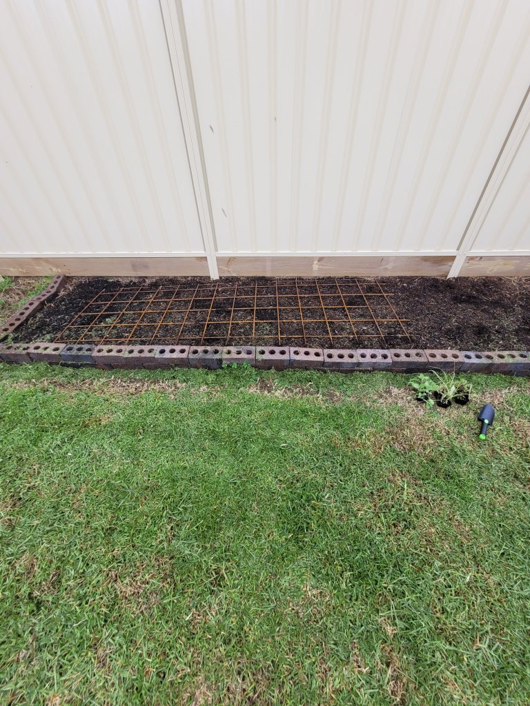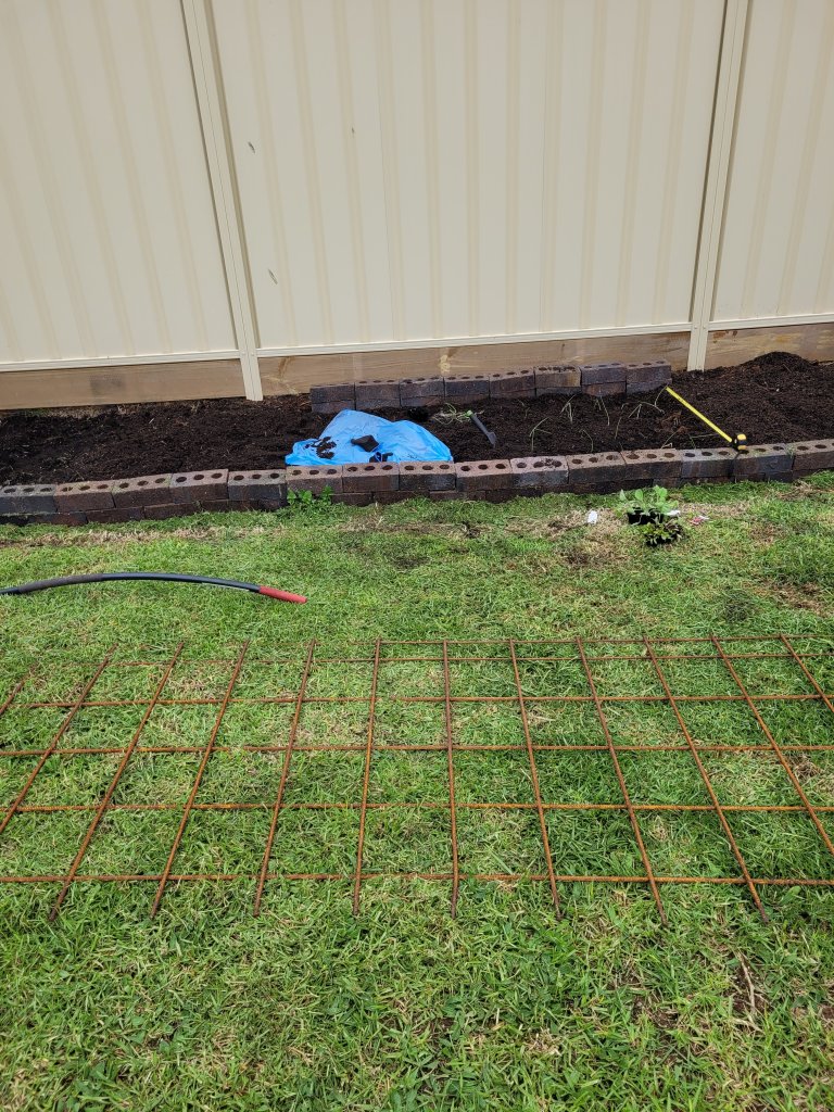 I also very much need to build up the bricks along the back so that I can put the wire grate thing over it to stop Boss from running through the garden.