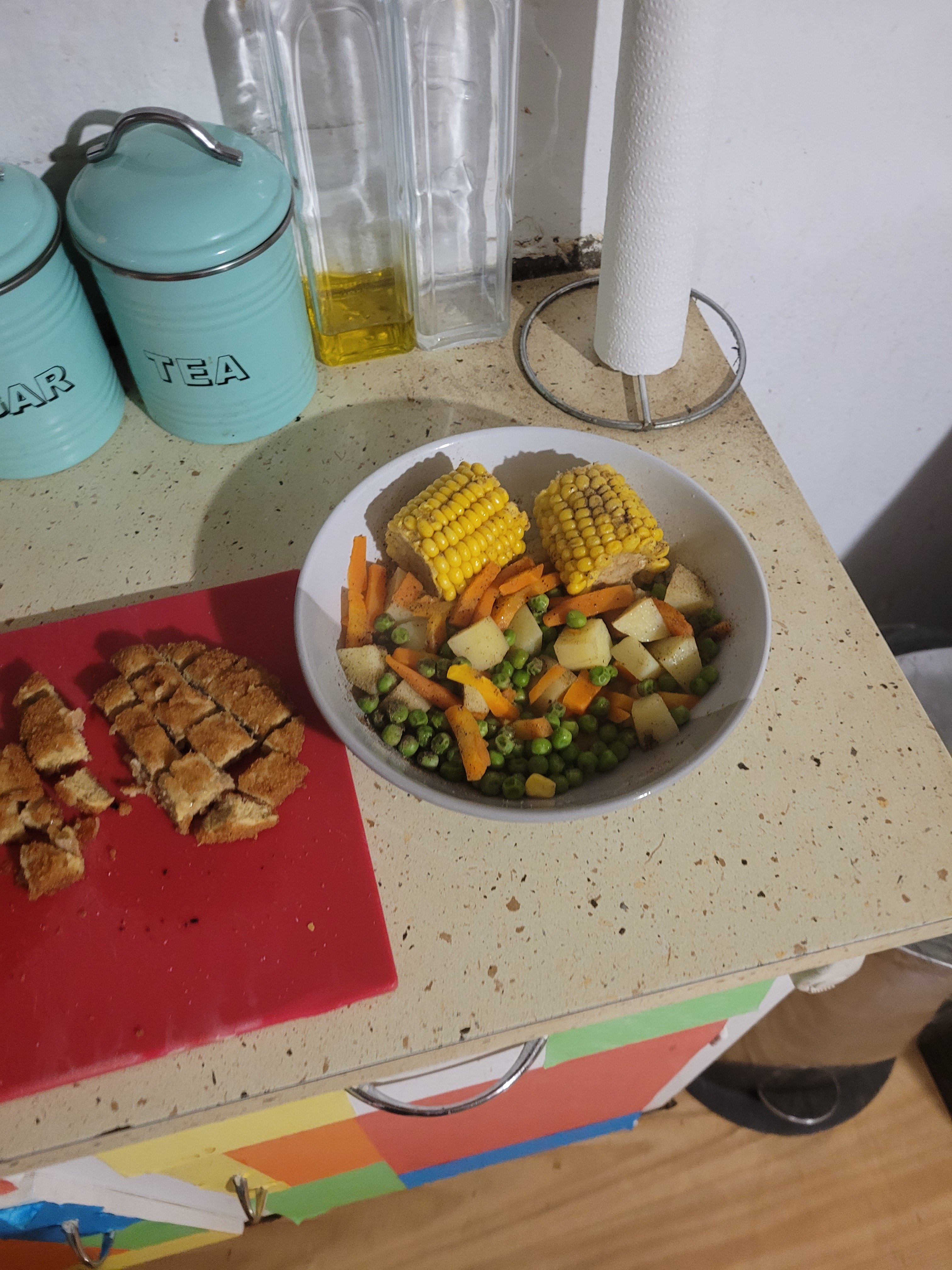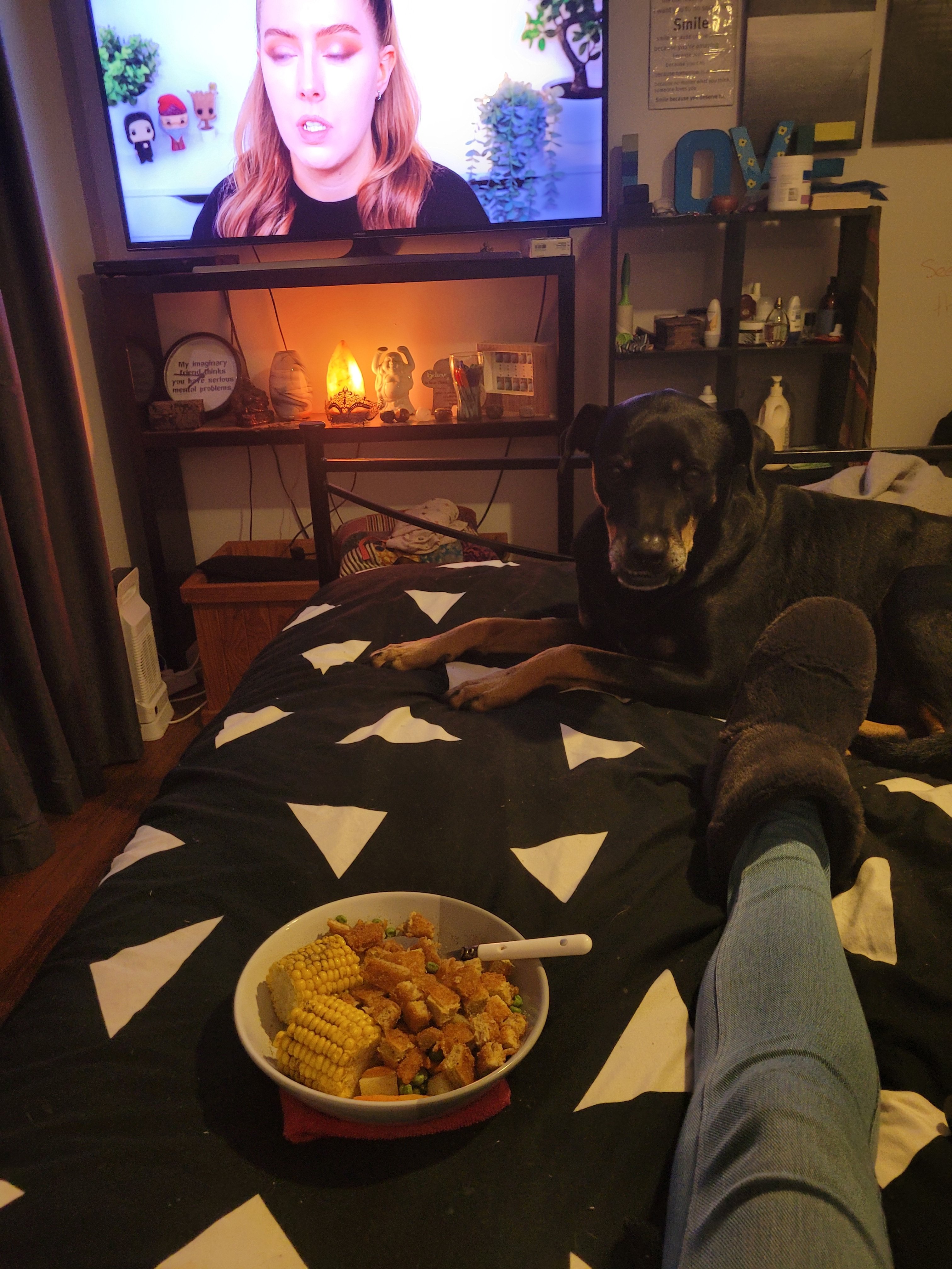 Oh, and I cooked myself dinner. Delicious vegan patties, not the fake meat kind, and vegetables, but I was so out of it with pain that I couldn’t even finish it. Though I was talking to Grant on video call while it was cooking and told him that I like to cut my food up into bite-size pieces so I can put everything in a bowl and eat it with a spoon!! For the child in me maybe š š