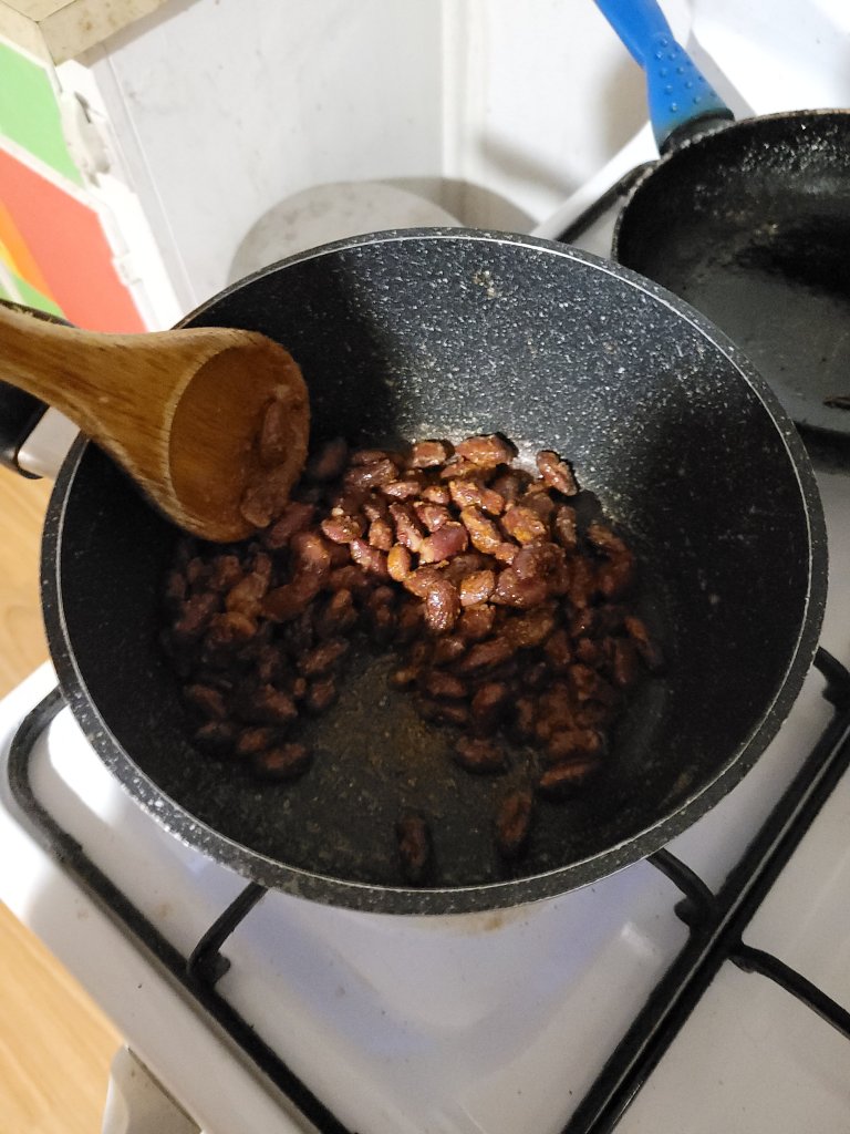 Upon tasting, it is incredibly spicy. It tastes ok but the ratio of beans and spices was to mix through all the rice, but I don’t want to do that since burning them š