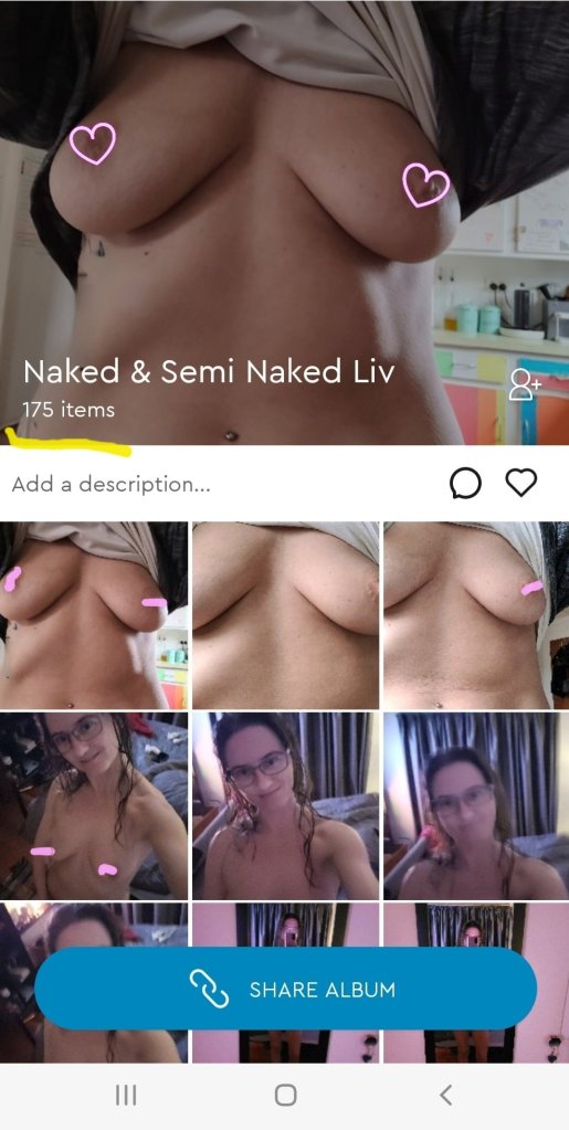 But for now I have created a semi naked, so topless, panties, towel, bath, and fully naked photos. I managed to select 175 photos but my phone had started slowing right down and the last 20 odd took a few seconds to actually select. So, I have created the album but am not yet finished sorting the pictures. Though there are many double and sometimes triple copies of the same thing, which I will have to fix once everything is sorted into easy to find albums..