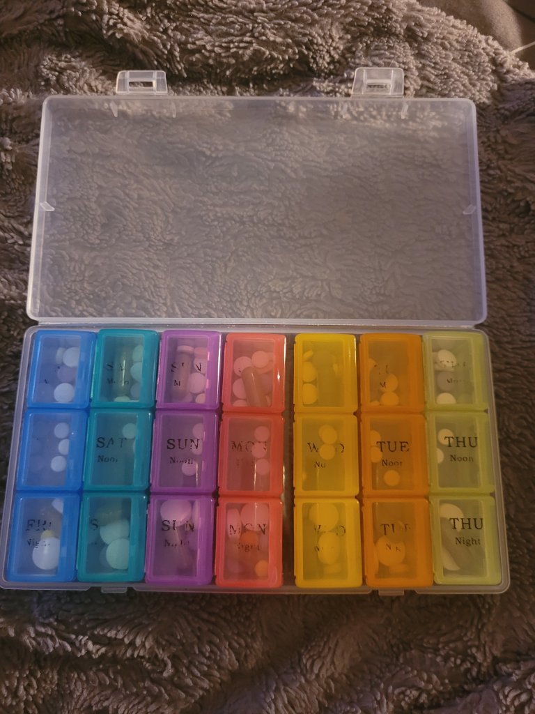 I filled my fill box for the week and included the lower level of my pain medication to my morning meds.