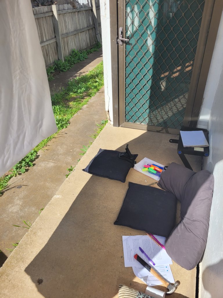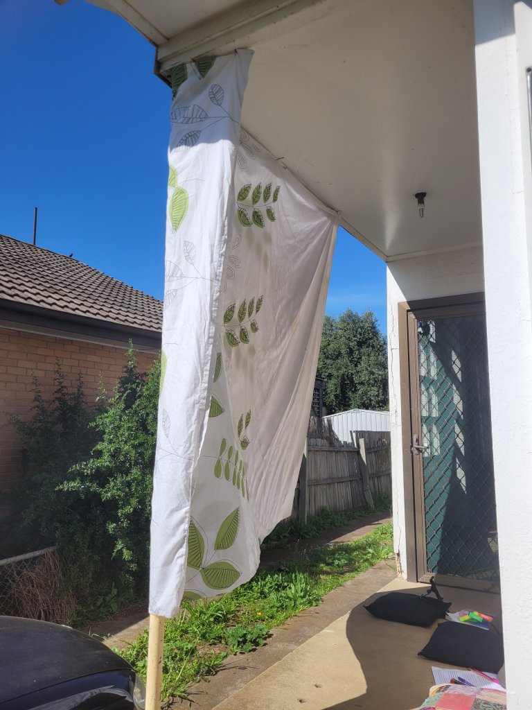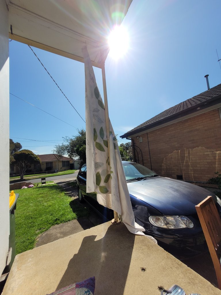 So with Andrew’s help, I now have shade out front for when I want to sit out here and study or work etc š