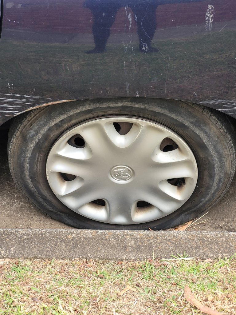 Thankfully, my neighbour and friend, Andrew, came to the rescue and was able to change the tyre for me. I am very glad we had already discussed and looked at the spare tyre prior to actually getting the flat, so the spare is perfect.