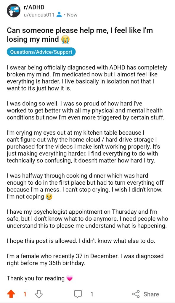I want to go into hospital. I feel like I’m losing my grip on reality when shit like this happens.