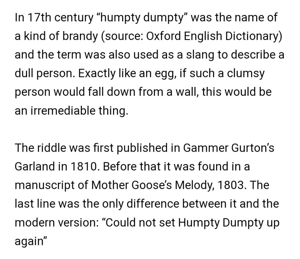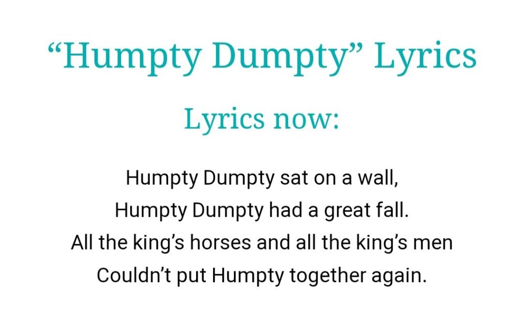 I’ve gone from constantly having The Wizard of Oz on my mind to hearing Humpty Dumpty a lot.