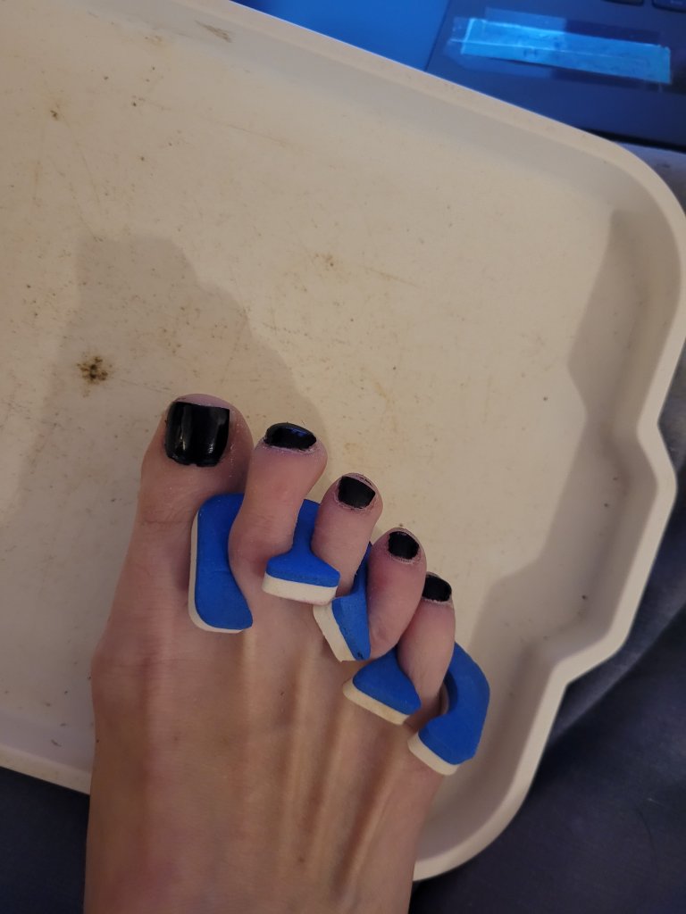Another thing I’ve been trying to complete for a few days is trimming and painting my toe nails since they were in need for a fresh coat. I’m using that 60 second fast drying that I bought from Chemist Warehouse, though off the top of my head I can’t remember exactly when. Maybe a couple of months 🤔 I still need to paint the second coat of black then extra strengthening clear top coat.
