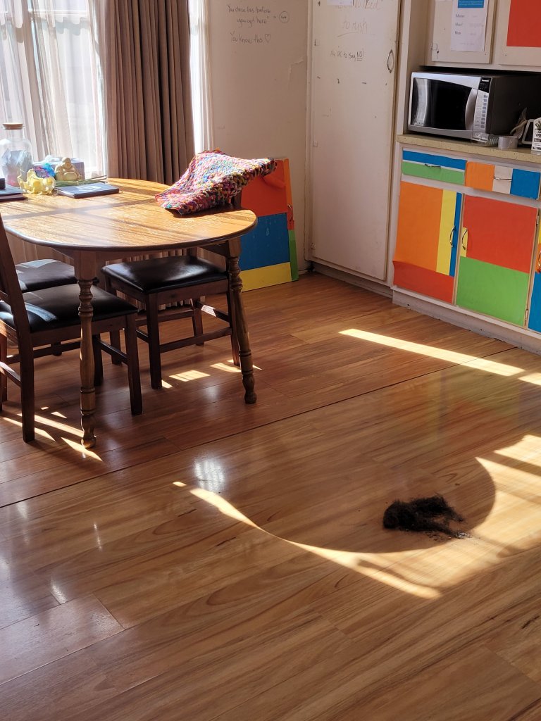 I ended up sweeping the kitchen floor just now. Look at what a couple of days of not vacuuming looks like 😅