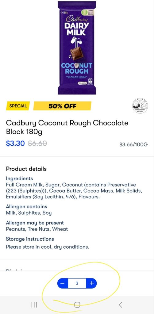 I have one free delivery service from Milkrun, which is groceries from Woolworths. Currently, Coconut Rough is 50% off.